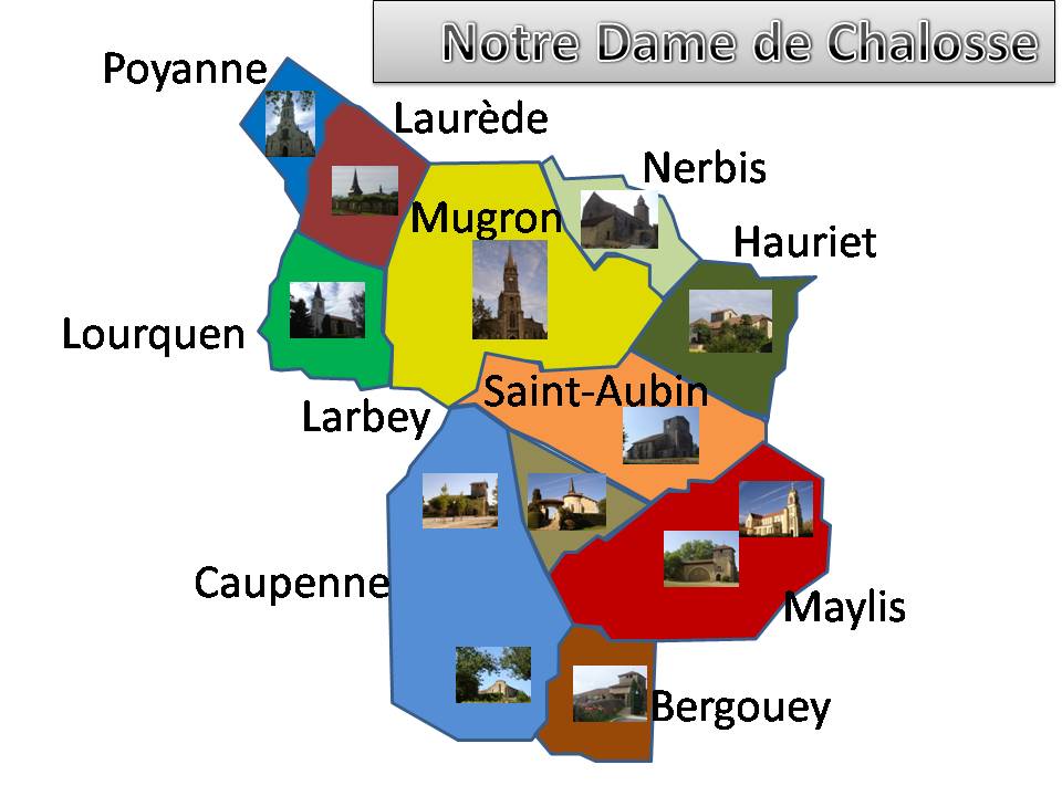 Sa fondation a été célébrée le 23 février 1997 à Mugron en présence de Monseigneur Sarrabère. Le choix du nom de notre paroisse découle de deux critères: le premier Notre Dame fait référence au sanctuaire Marial de Maylis, le second « Chalosse » situe géographiquement les onze Relais se trouvant précisément au cœur de la Chalosse.